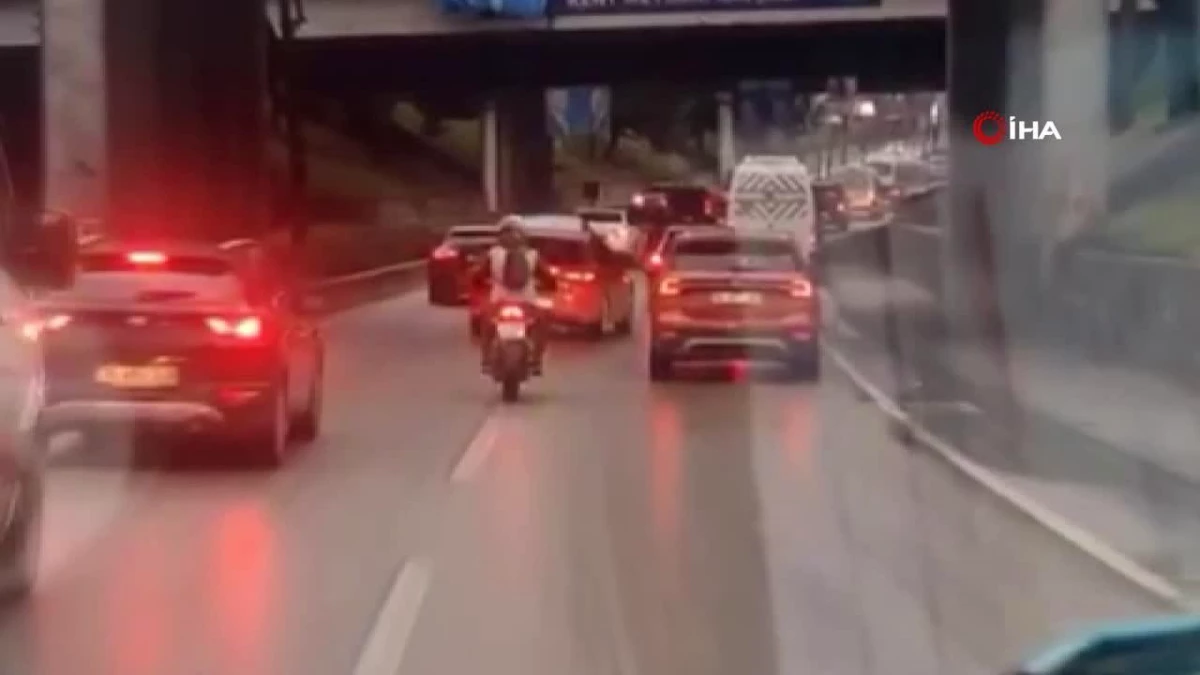 Ambulansa öncülük yapan motosiklet şoförü kameraya yansıdı