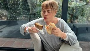 Aksu’nun iki elinde bulunan ekmekleri yediği anları paylaşan Müftüoğlu, “Yiyerek zayıflama metotlarını öğreten Sezen Aksu’m” notunu düştü. Aksu’nun fotoğrafı kısa müddette toplumsal medyada gündem olurken bileğindeki hastane künyesi ise başları karıştırdı.