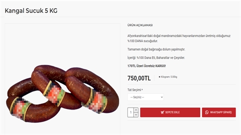 Sucuğun imalinde kullanılan kıyma, baharat ve öbür sarf materyallerin fiyatının piyasada hayli yüksek olduğunu anlatan Yardımcı, “5 kilogram sucuğun 750 lira olması demek, kilosu 150 lira demek. Bu hesaba bakınca 150 liraya işkembe yok. İnternet sahtekarlığı bu. Hesap numarasına parayı gönderiyorsun; ne sucuk geliyor ne de para. Bu sahtekarlıktır” dedi.