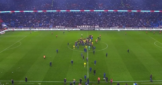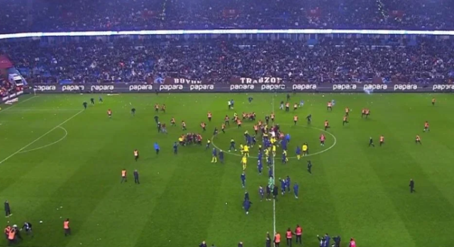 Trabzonsporlu taraftarlar, maç sonrası alana girerek sevinen Fenerbahçeli futbolculara saldırdı. Fenerbahçeli futbolcular, saldıran taraftarların ortasından soyunma odasına gitmeye çalıştı.