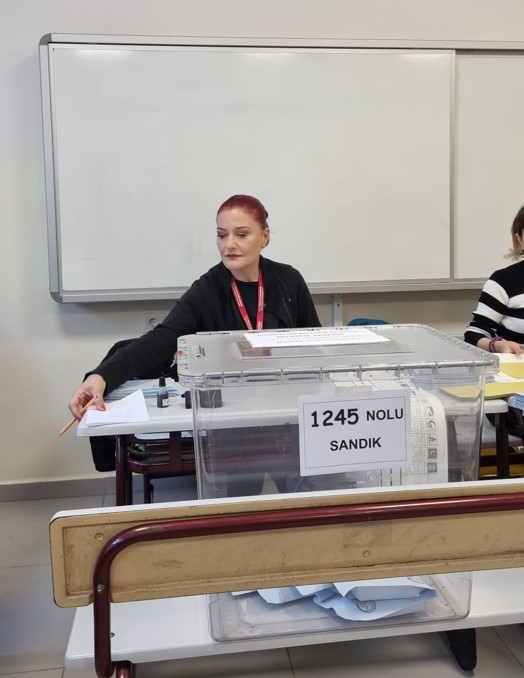 Sanatçı Beşiktaş Lütfi Banat Ortaokulu’nda Sandık Kurulu Üyesi olarak vazife yaparken görüntülendi. Sabah oy kullanmak üzere okula gelenler, sandık başında Candan Ercetin sürprizi ile karşılaştı. Candan Erçetin’in Sandık Kurulu Üyesi olarak vazife yaptığı anlar kameralara yansıdı.